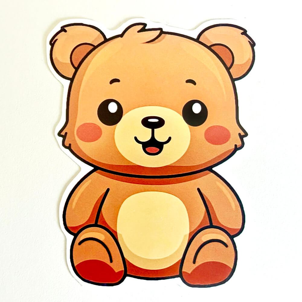 This teddy bear sticker is looking for a new home! Handcrafted and made from a polyester-based material, this sticker is weatherproof and designed for long-term durability. Stick it on a laptop, notebook, car, water bottle or anywhere else your heart desires!